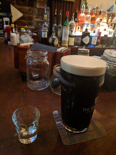Good neighborhood bar with a "divey" feel but super friendly bartenders and regulars. This is a Guinness bar but they have a few other beers on tap and also have a nice whiskey selection and a few potent cocktails. Only order the "dead poet" if you consider a long island ice tea to be light on alcohol. Drink enough Guinness and you can get your name on the wall. Free popcorn and decent bar food ordered from surrounding restaurants. Reasonable prices.