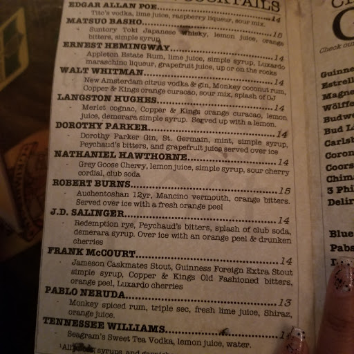 Absolutely love this place. Its definitely a bit divey. The names of their cocktails are all of famous writers and poets which definitely gives this place personality. The beers are also really good - they have some mean Perfect Pint Guinnesses.