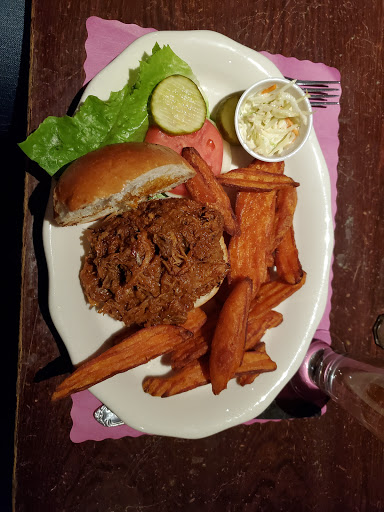 I went here on a date after work on a Friday. The food was pretty good, I had the Pulled Pork sandwich and she had the Manchester. We both like the food and atmosphere. Its your typical Irish/UK style pub. The prices were a little high but thats expected in the city. The only complaint we had was the service, it was decent up until we ordered dessert. It took nearly a half hour just to bring it to our table. Normally I wouldnt mind, especially when Im in great company, but it was still pretty empty. Overall a good experience.