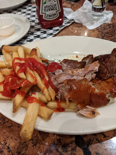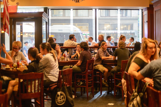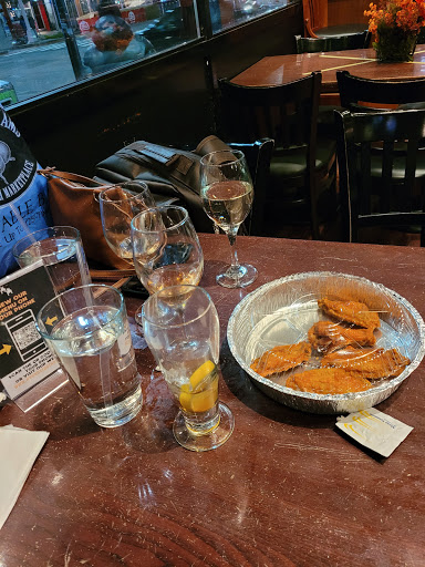 Good solid pub food spot, I go often because I live across the street and the prices are reasonable but its really nothing that special at all. My favorite thing is the steak sandwich, very tasty. The service is fine from the waitstaff but they will definitely slow down there service for drinks if your eating there as it approaches end of happy hour I noticed or wait until its over to go to your table if you come in 10 mins left of happy hour. Which is annoying especially since I dont usually order happy hour drinks anyway so its just inconvenient and obnoxious. And whats really obnoxious is the club like security they have at the door, I mean come on. Its a pub. Im pretty sure it has to do with race because the host and the bouncer will stop you at the door and make you show Id just to go in and eat even after you say that your coming to eat and want a table and not just going to the bar. After me and my friend said well show it to the wait staff if we choose to drink with our meal the host said, and I quote "well I will not give you guys any drink menu so you wont be able to order unless you show your ids rite now." May I add that me and my friend are both in our thirties and I feel it has to do with race because after the rude encounter, we watched as we were eating throughout our meal and they are very selective of who they id. If your white, lets just say you wont have any issues and can literally walk right in over to the bar no questions asked. I really dont know what there trying to go for, I literally come in to get some food and some drinks if I feel BECAUSE I LIVE ACROSS THE STREET, in the middle of the day on a week day. Its not a late night, weekend, club hop Party spot. So you should really cut out the attitude. Unless of course. Your only trying to cater to a certain type of crowd to patronize your business.