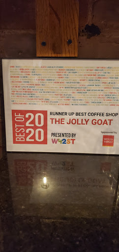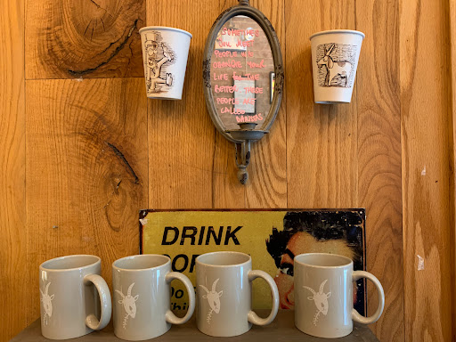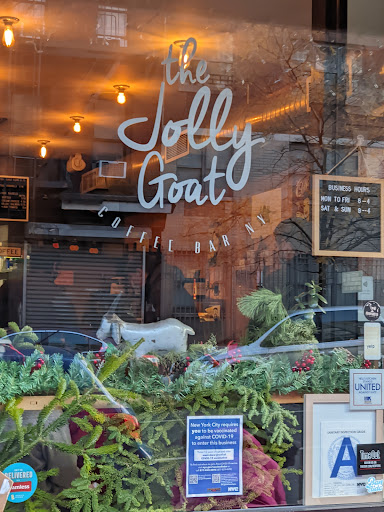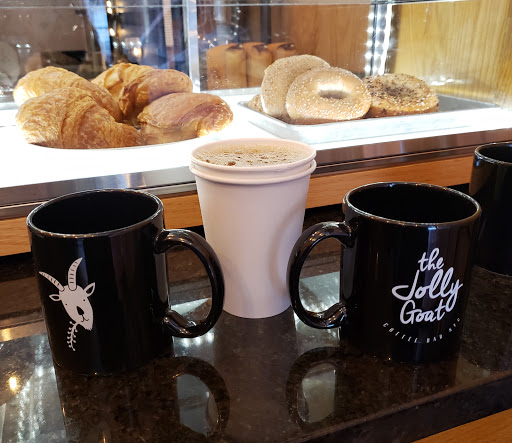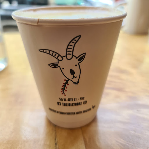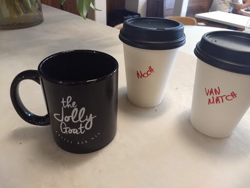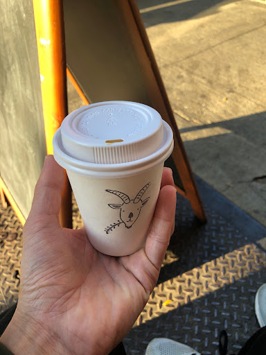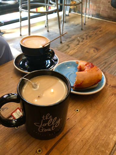 Decent cold brew on tap. Insanely friendly and knowledgable barista. Poured a very good Chemex pour over. Small shop that knows what it is doing. Bit pricey and the pastries seemed less than exciting, but definitely worth going out of your way to support good coffee and good people like this. Way to keep coffee good Jolly Goat!
