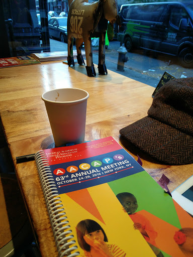 An adorable little find in Hells Kitchen. I think its where all the locals come to get their hipster coffee fix, and I can see why! It is literally a coffee bar, with one barista working on a Sunday afternoon. Dont expect to hang around and study; the seating is limited to two barstools in the window, and that is about it. The coffee is slightly pricey, but they do brew stumptown beans. The menu is comprehensive but not overwhelming, and they offer a small assortment of pastries to choose from.