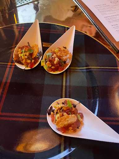 GR8 food & drinks in cigar-bar/private lounge style setting. Premium whiskey, scotch & wine offerings- enjoy by fireplace @ cozy upstairs bar and/or w dinner downstairs. Top shelf bartenders- know their stuff, happy 2 pour samples & take their time 2 make a perfect drink. Unreal dinner menu- caviar on fingerling potatoes a must, but cant go wrong w anything ordered. W friendly & knowledgeable wait staff, was completely killer experience.