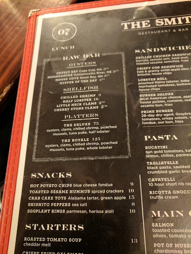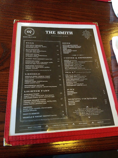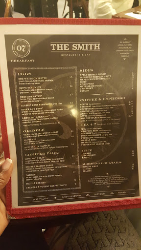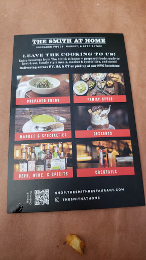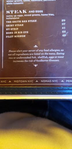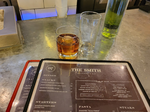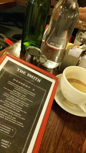 Ill like to be honest Im not usually the kind to give a 1 star review . But unfortunate just as you want to stand out for great food. Service should be the same . This location like all the other smiths in the city offer really good food and the kitchen really stand out in this restaurant . I want to add this review and it might help some of you out there . I experience in many visits in the smith that service is acceptable and I understand how in addition busy atmosphere things might work a bit faster paste , the problem is when the dont work at all . I visited to have dinner in Christmas eve made a reservation came in about half an hour early no problem Ill waited in the bar grab a drink and even order an appetizer because I knew I might waited a bit longer for a table. We finally got a table maybe 10 minutes passed my reservation and this is understandable is Christmas eve . What when wrong was the simple fact that once our servers took our order ( strip steak and house steak) , we never ever saw her again not once or maybe a simple. Hey guys Im leaving heres another server if you need something. actually it was paying the bill that I figured she left . So what happened simple steak got on the table and we didnt even have a steak knife we where siting waiting, maybe she was coming ??? Nope . once I started too look around for someone as my food was starting to sit for too long i notice this one person looked different to a server I though maybe a manager well I was not there to complaint so I just told em to please apologise me for interrupting him , and simple asked for a steak knife . He did so I started my meal . No one came to ask how our dinner was or if we maybe wanted something else we where just left in our own time when I realize our server have left unfortunately for us we where left in our own I asked my check to someone else and walked off really disappointed no dessert no hey anything to drink I know. I brought my drink half empty from the bar but it was finished before I got my food . So please try not to expect the best . I understand quick service but not the lack of one .
