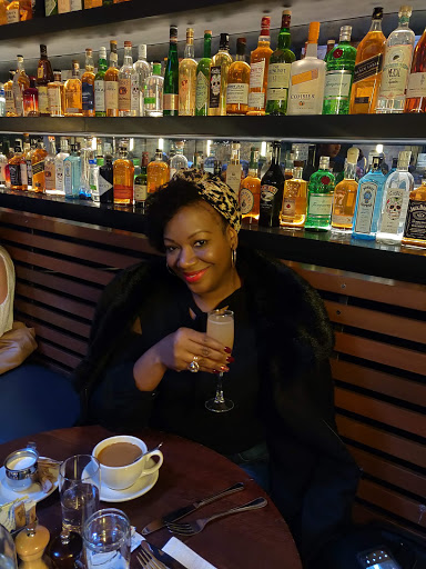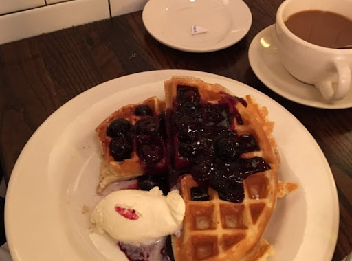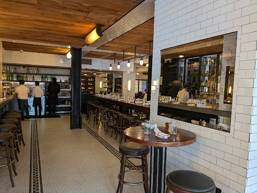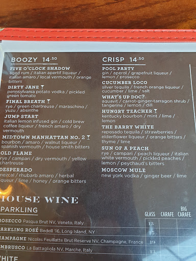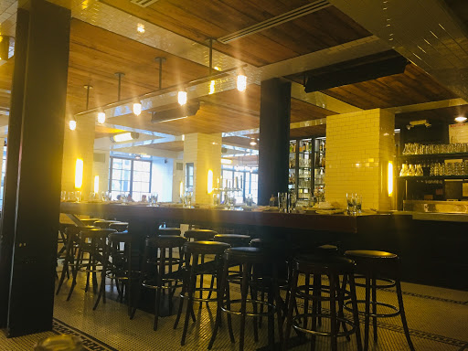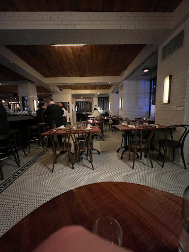 I would give it a 3.5 star if the option were available. Beautiful French doors and appropriate black and white decor. The staff was very professional in helping me find my table as I was the last of my party to arrive. They also promptly replaced a stained napkin someone at my table had received. The bee sting cocktail was decent, I knew it would be an Herbal drink but I wanted to try it anyway because it said it had honey infused vodka however I wish I had ordered the honey dew margarita. The food was elevated pub food. Three people order apps and two came out followed by the last app, I was surprised they didnt come out all together. For an app I had the fried potato chips covered in blue cheese. The blue cheese was okay but Ive had better, this dish lacks creativity. I ordered the special of the evening which was the Chicken and waffles. The chicken had a slight kick to it and came with a honey sauce. It was exceptional but Ive honestly had better chicken and waffles. The waffle itself was okay but even my own dog didnt want to eat it as a leftover. It was an interesting combination and concept but Im not a fan of what I ordered. Large portions as I could only eat one waffle and one piece of chicken. I wish i had room to test out their desserts! Service was exceptional and casual as the staff wore T-shirts which I found a bit off for the way the decor and ambiance of the establishment. Id still return to try other items on the menu but moreover Id return for the cocktails.