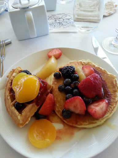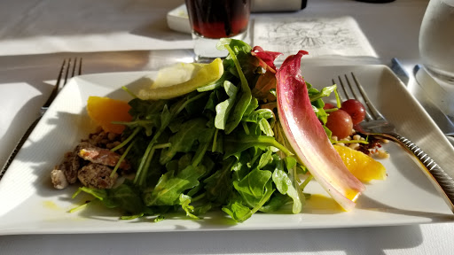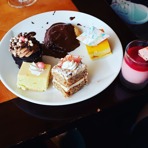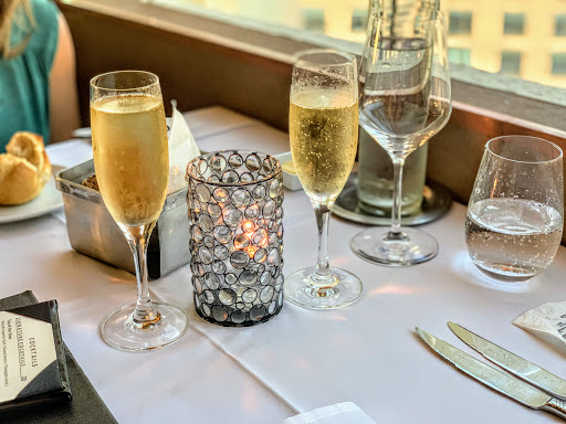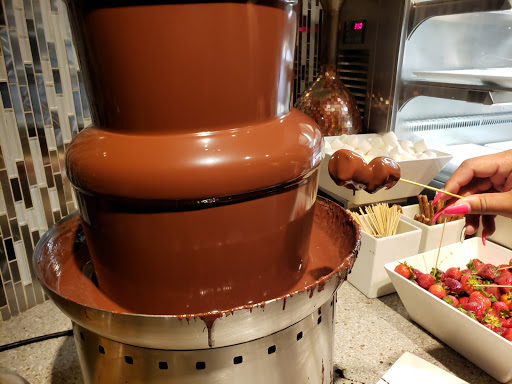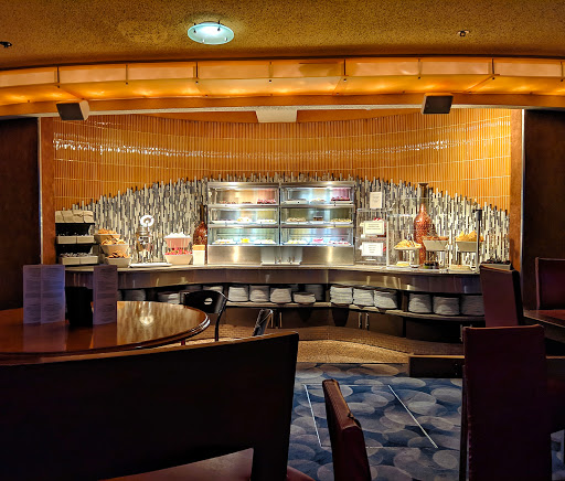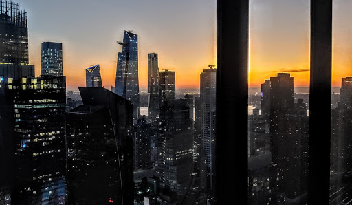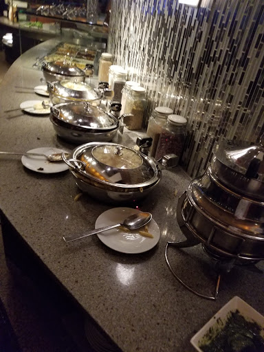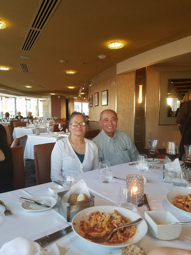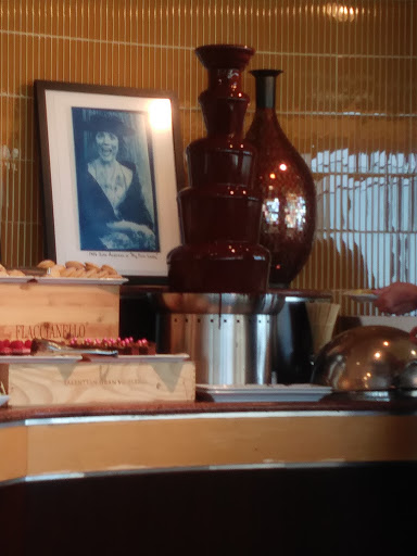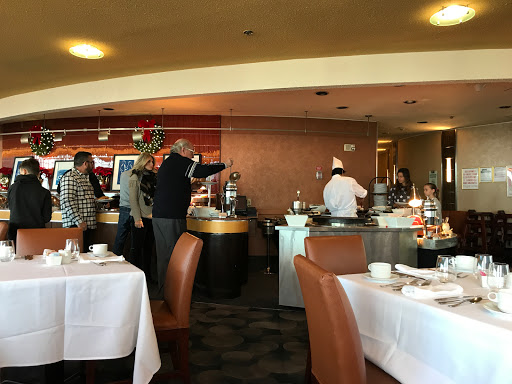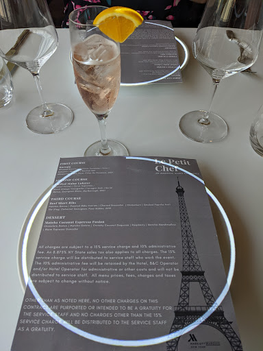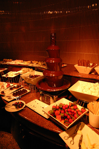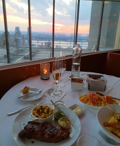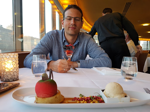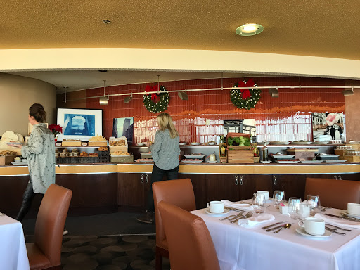 Six of us just went to The View restaurant up top of the Mariott Marquis near Times Square for my moms birthday. First the good. The hotel is very nice and rich looking. The elevators are, like they say on their site, pretty cool and sleek looking. Special elevators take you all the way up to the restaurant. The ambiance and atmosphere of the lounge and restaurant are excellent. Really looks like a rich luxurious place, which youll feel most financially when you ask for the check. Anyway, like I said, the tables and ambiance as a whole are top notch. Additionally, the view out on to New York city is great, although you cant really see on to the streets since below the restaurant the building stretches out a little bit father than the windows, completely blocking a downward view. Youre just up there looking at the sides of NYC bulidings and the new jersey side of the hudson. Its still good though. BAD: Food and price We went to the buffet lounge which is one floor up from the restaurant. When you think buffets you think aisles of trays of food. Not here. Just a short table with two main dishes (baked chicken and some sort of beef ribs or something) and a bunch of unique looking salads and like 5 toppings for the salads. Also pasta with marinara and about 5 toppings for the pasta. Food isnt that good. Most of the items there are COLD, and if they arent cold, they get cold pretty fast. Most of the desserts looked like they came out of sams club except crackers and cheese looked pretty high quality. Also chocoloate fondu was a plus. Price: The buffet is supposedly about $33 per person base. Im saying base like you go to buy a car thinking about the "BASE" price but then you end up paying 2 grand more in taxes and crazy dealer fees and interest. For six people, total was $344.Each drink is $6. Our "cover charge" (for being there till after 8) was $44. Gratuity was $48 (for 6+ people its automatic 18%) I know for such a unique experience and location that it aught to be very expensive. It was just the cover charge and drink prices that threw me off at the end. But I guess with a rotating platform dining room 48 stories in the sky, 80% of your payment is for the experience rather than the food.