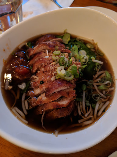 Duck salad is incredible! One of the best salads I have ever had. Duck is perfectly cooked and soaks up all the amazing dressing. Tom Ka was pretty mediocre. Tasted like they cooked the broth separately rather than boiling all the ingredients in the coconut milk as its supposed to be done to bring all the flavors together. Drunken Thai Noodles was also excellent. Its full of flavor and the green beans and other vegetables tasted so fresh like they were just pulled right off the vine.