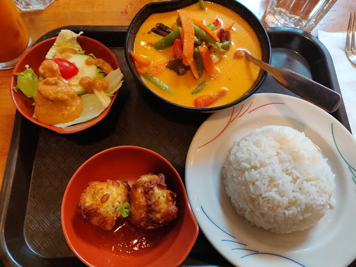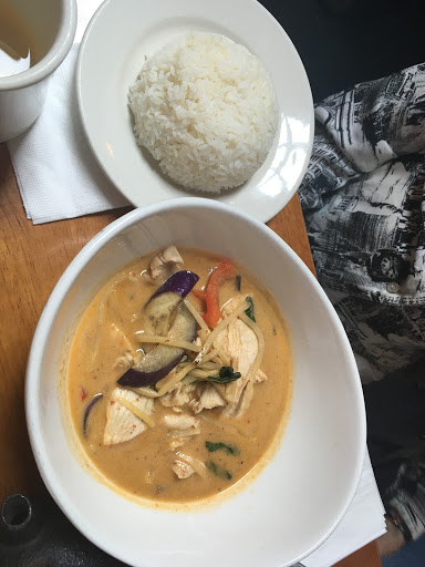 The lunch special is a great value. Good spot for a filling but quick meal. The menu has standard Thai selections. Watch your seat though - one of our group got a fresh wad of gum stuck to his jeans from the chair.