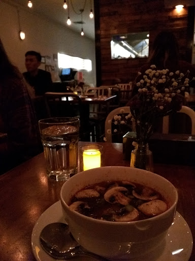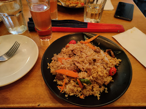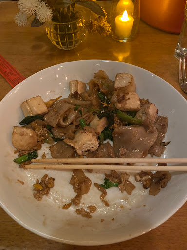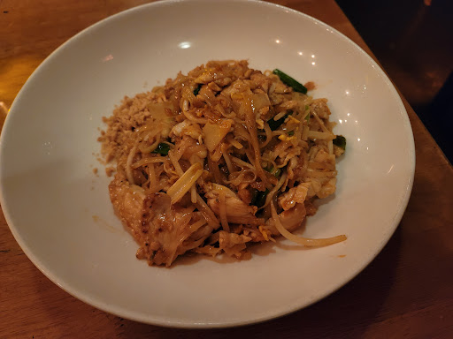 Yummy Thai food, quick service, very nice atmosphere with hanging light bulbs and wood detailing on the walls. I had the Pad Thai with chicken which I enjoyed. The chicken was really good and not over seasoned or oiled, it was just perfect. Id go back here for sure.