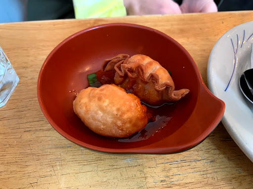 Mediocre and pricey Ordered seafood paella in clay pot. Its basically seafood fried rice served in clay pot. And its $17 The Thai dumpling is decent. Probabaly the only worth ordering.