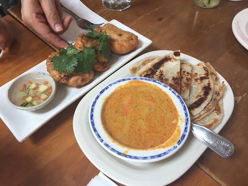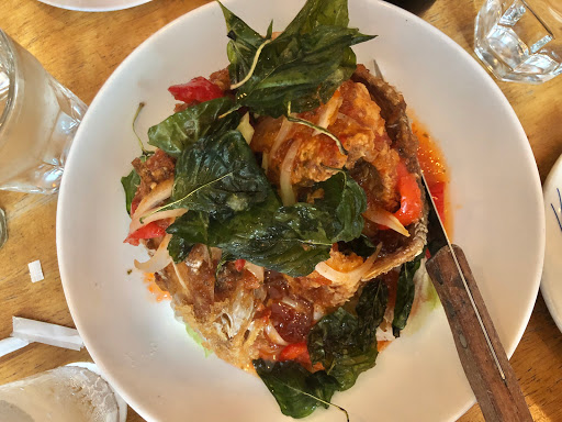 Stopped in on the way home, wasnt the usual dark, typical thai restaurant. The place is bright,has some cool lighting and has a industrial feel to it. Ordered the crab rangoon appetizer, best Ive had. Also tried a dish called roti, which came with a spicy curry sauce, fantastic. As the entre, basil chicken over rice, real simple dish, asked for it extra spicy and thats what I got, good amount of heat and great flavors. The staff was great, very friendly, a nice pleasant experience. Good prices, highly recommend it. Great thai iced tea !