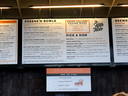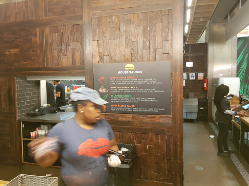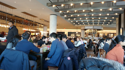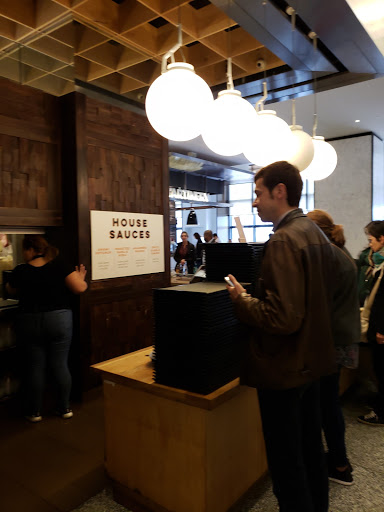 The restaurants here at Hudson Eats inside the Brookfiled Place are lined up nicely, along the bright, clean space. I really appreciate them making it spacious enough for people to be able to walk around, while looking for the food of your preference. We ordered our food and looked around for some seats. Another good thing about Hudson Eats is that they offer pretty good amount of seating everywhere. There was a very large eating space with a stage, where they had a live band playing music as well. If you want to be away from the noise, there were more secluded, quiet seating space alongside the back wall/window as well. The burgers and fries we ordered were excellent, yes a bit pricey but very high quality. Even though the food is excellent in every way, unfortunately, I can NOT say the same about the service. The staff here were not friendly, cold, and rude... When we asked about their original sauce, we were told to "read the sign"... Seriously? The sign only indicates the name of the sauce, without description, so we wanted to know more about the sauces, in terms of flavor and such. But we decided not to continue with the conversation. Why bother talking to someone who is completely grumpy and rude? I hope they will get more staff who knows the meaning of "customer service" in the near future. Read my full review of this restaurant and food on my food blog at foodlovergirl.