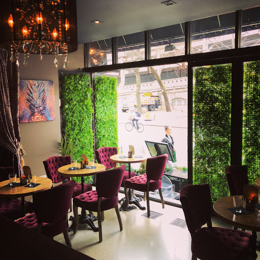 Service-oriented. I planned a group happy hour this summer for 9 semi-thirsty folks. My friends and I were all in agreement about how cute and tasteful the decor was. Mis-shaped empty picture frames lined one of the back walls(Im tempted to sneak a selfie pic into one of these frames just to see if anyone would notice). Cute chandeliers were presented in different corners of the space, and as previous reviewers have mentioned, thrones meant for kings and queens were strategically placed. Its on the edge of the East side; you wont find a loud or noisy atmosphere with a line out the door. However, it is more appropriate for small groups and dates. It is not a cheap place; the happy hour lasts until 7pm and its $7 for a glass of red, white, or rose. Those are your options- no more, no less. Each of us ordered 1-3 dishes to share or to hog. I love cheese so a bunch of us ordered the 5 cheese selection(#s 1, 3, 6, 9, & forgot the last one). The truffles embedded into one of the cheeses were divine, and the Tête de Moine was an interesting eat served as shavings. The other plates are on the tiny side; my friends bf described the burgers as being bite-sized. The shrimp salad was pretty decent; the vegetables were the standout. I didnt think the wings were anything to be excited about. You can find comparable wings at Applebees. With a drink or two in your system, youll need about 3-5 dishes to feel full. Like I said, not a cheap place, and quite difficult to split a bill if everyone hasnt ordered approximately the same amount. Keep it small. The service is pretty top-notch. My group and I stayed from 6:30 until close to 11pm. I had friends arriving at various times due to everyones ridiculous work schedules. Not once were we rushed to leave, and this is where other restaurants need to take notes: they maintained their attentiveness to our tables needs. We didnt order an extravagant amount of food, but we were still treated as well as all the other patrons. Did I mention their great smiles? Thats pretty dope in my book.