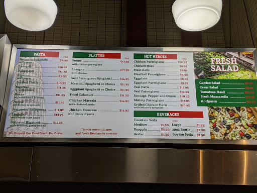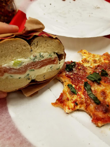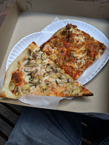 Authentic NYC pizza with ample seating anger good prices. Gets very busy during the lunch rush.