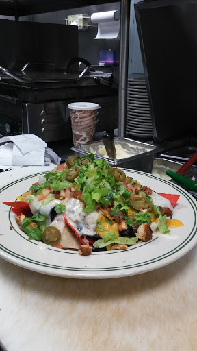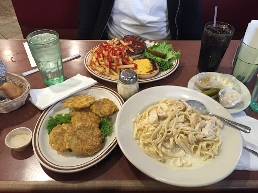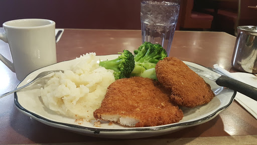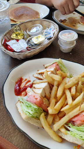 Convenience (open 24/7) is the only good thing here. However, I experience very bland, depressing food here the few times Ive sat in. Waiters were never very attentive so they would get the orders just a bit off. But the ladies took care of us were polite. I noted in my last attempt, my french toast was extra yolky yet had no actual flavor? Just burnt bread soaked in way too many egg yolk...and there was a potato stuck to it. We figured it was my friends potato which somehow got on to my plate...eh. If I ever do come here again, i must expect very low, low to the bottom of anything from this place at this point. My other friend seems to really dig this place, i believe she will insist in fact that we eat here. Dont understand how people can enjoy their food... I did like the previous food before the place was renovated. And am glad to see such a variety of locals and hospital employees sitting together. But i can tell the kitchen is way too strained to pull anything, even basic, together. Home potatoes are the only thing I have enjoyed here. BTW chicken was DRY in lemon chicken soup. wth??