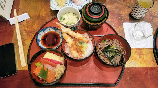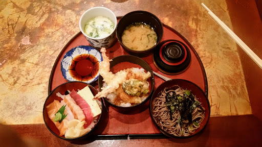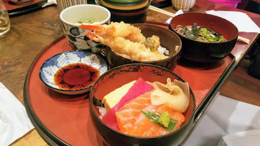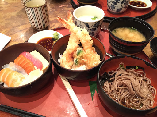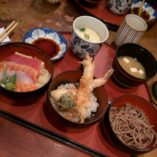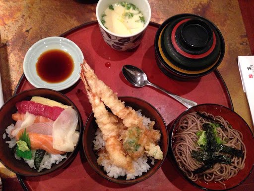Ok, listen up. This place probably has the greatest lunch deal you will ever find at a Japanese restaurant in Manhattan. Im telling you now, this review is ONLY FOR LUNCH. Everything is WAY too expensive on their menu for how it tastes, BUT if you go there for lunch, they have this awesome lunch special for less than $13 that includes a delicious variety of shrimp tempura, miso soup, steamed egg, sashimi bowl, and soba noodles. Its absolutely delicious and totally worth it; Ive yet to find another place that does it like they do. Service is ok, not the greatest but not terrible either. Price for quality and quantity of food is totally worth it with the lunch special. Anything else on their menu is kinda out of bounds unless youve got money to spend. Would totally come here if I ever was in the area again for lunch!
