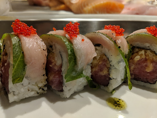 The sushi here was pretty good. The place is a bit small and might be hard to spot at first since it is downstairs. I would make a reservation first so you do not have to wait. The rolls are pretty substantial or you can order sushi/sashimi a la carte. I would recommend the mango salmon roll.