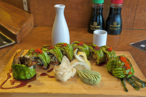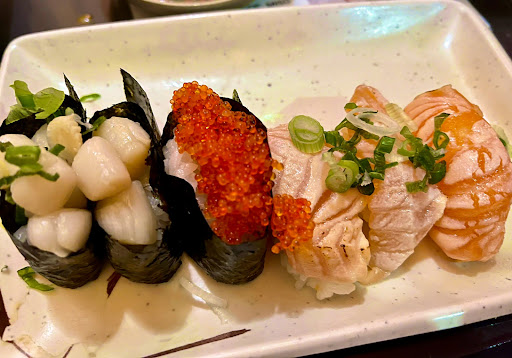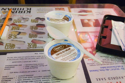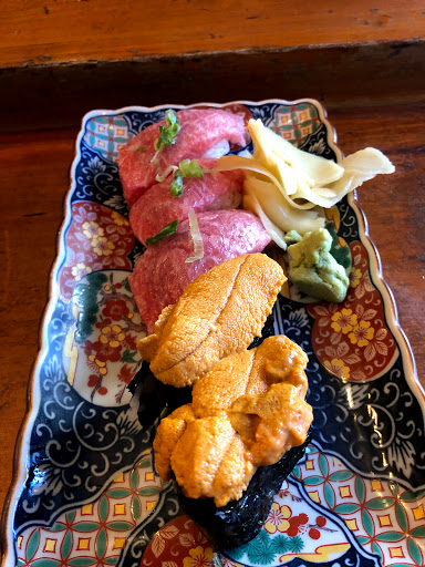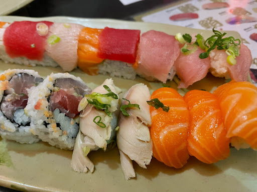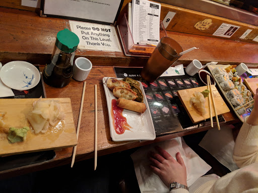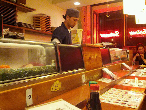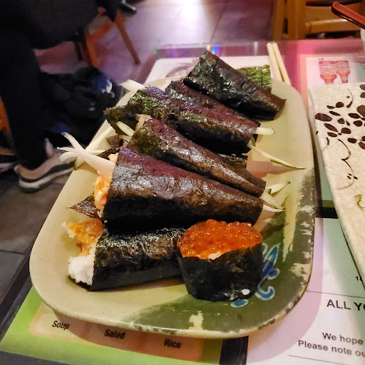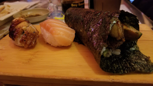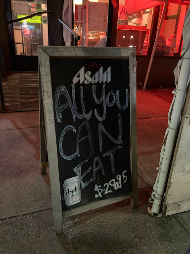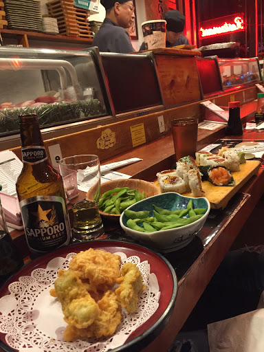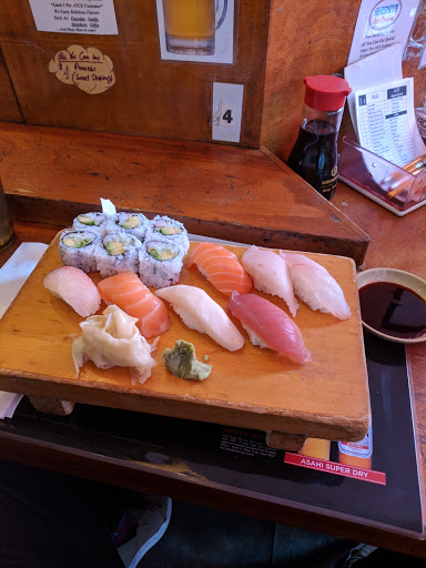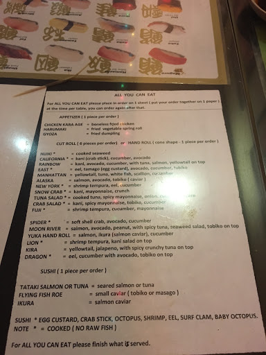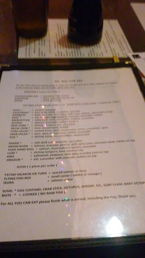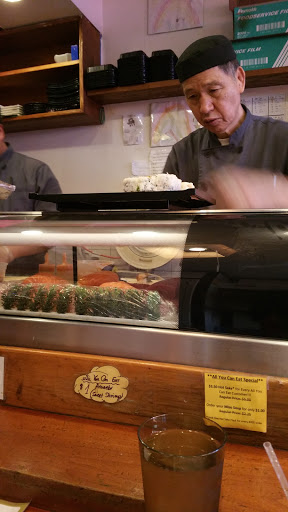 This is a great all you can eat sushi place. I like seating at the bar. It gives me a chance to see the sushi chef and feels more authentic than seating at a table in the back of the restaurant. For a little more than $20, its a good deal for sushi. Unlike some other places, you dont get appetizers or dessert. The sushi pieces are not very big and dont come with a lot of rice (this is a good thing). This allows you to try all the options until you find the pieces you like. I like the eel, tuna, salmon and fish roe best. They do charge extra for some rolls and sushi and expensive things like uni are not included with all you can eat. For the price you pay its a good bargain if you eat a lot. I would go back again.