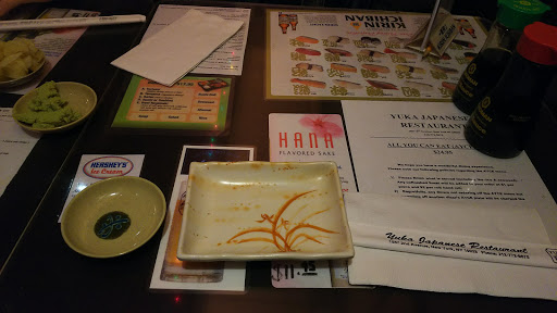 After looking at reviews, my gf and I from Ontario thought we would splurge on some AYCE sushi. We tracked down this place and thought we would give it a shot. Now I have enjoyed AYCE for the longest time; however, my experience at Yuka makes me wonder if I have just been lucky with all the sushi places I have gone to. Yukas AYCE menu was really small and for any rolls such as dragon or shrimp you had to pay a premium. The nigiri sushi had a lot of rice under it, served warm, the dragon roll (yes I paid for the "premium sushi") was massive with lots of rice, and no sashimi on their AYCE menu. I have never eaten sushi where the rice and fish were served warm, not to mention the fish smell as you enter - a key sign that the sushi isnt kept cold. Finally the last thing that my gf pointed out was the bathroom. According to her and I will quote "America is a prosperous country, why do they have a 3rd world like bathroom? The toilet and sink were made out of steel and it might has well have been a prison. The floor was sticky and wet." Thank goodness she went to the bathroom after we ate because I would have left right away. Overall, experience was horrible and will never, ever recommend this place