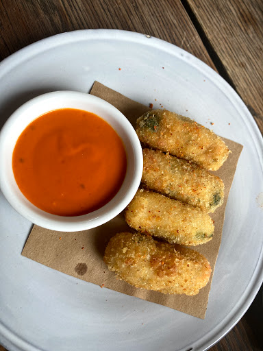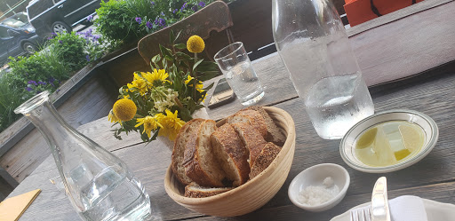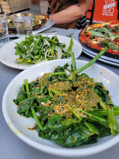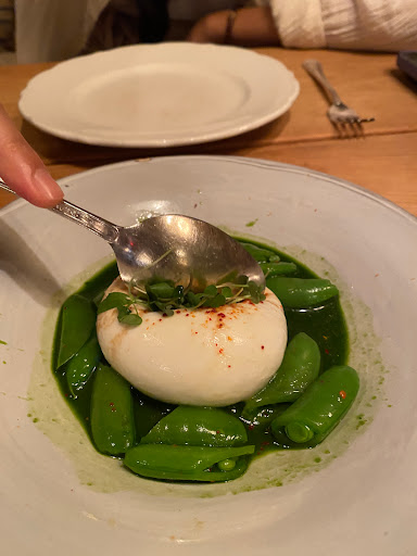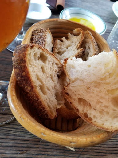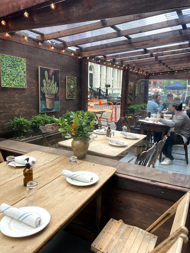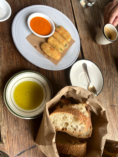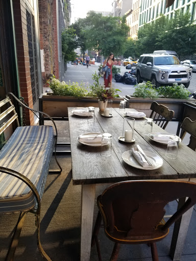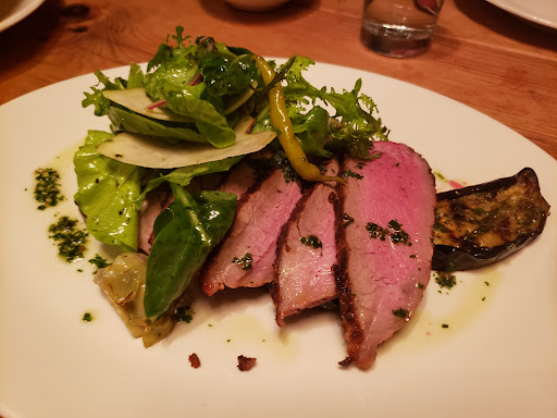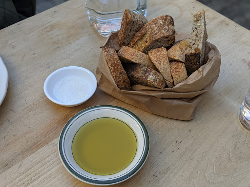 Walked in for lunch with a party of 3 at 12:30 on a frigid Friday with no reservations. There were no separate tables available but sat with no problem at a long semi-communal table that separated sections with large flower pots. Food was delicious, sophisticated, prepared and presented with skill. Wine list was pricey but clever, and we found a nice Ligurian white. Service was attentive if a little quirky. Space is rustic and homey but in a high-style way. Grilled wahoo was a stand-out; burrata superb. I wasnt crazy about the kale salad but others in my party raved. Good place, bordering on great.