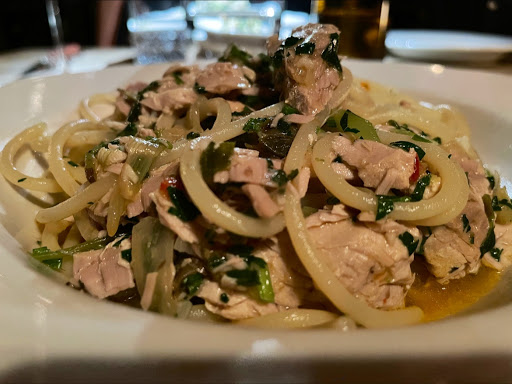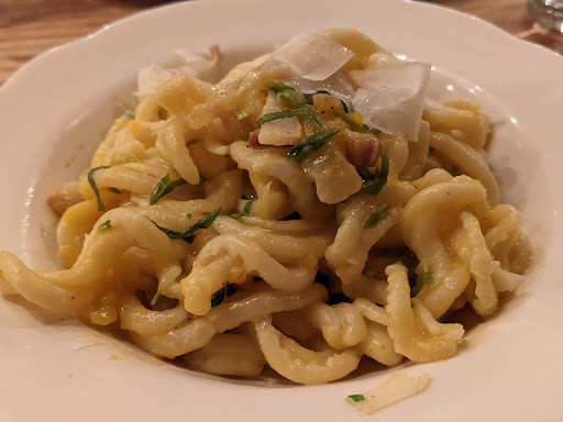 The only thing wrong with II Buco is that my parents dont want to try anyplace else when they visit! My roommate LOVES the octopus appetizer and I had a shaved artichoke dish to start. The lobster mushroom pasta dish was out of this world and they have a fantastic wine selection. The menu is short and well-edited. The waiter was attentive and informative. He made some great suggestions. None of the tables are too close to the bathroom or kitchen. The truffle dishes are pricey ($100 for a pasta) but you know they are using natural ingredients and not that fake "truffle essence that is so bad for you. The vibe is rustic and reminded me of my favorite neighborhood spot in Fiesole, Italy.