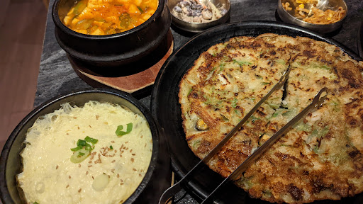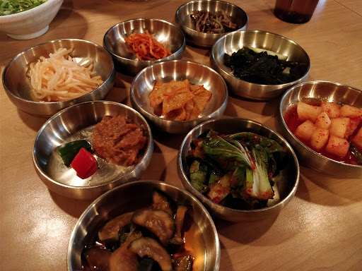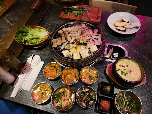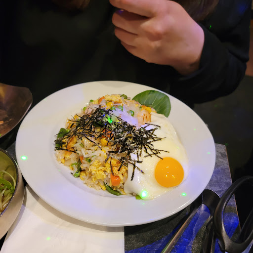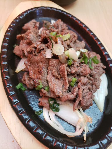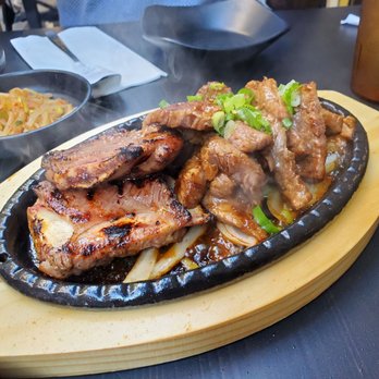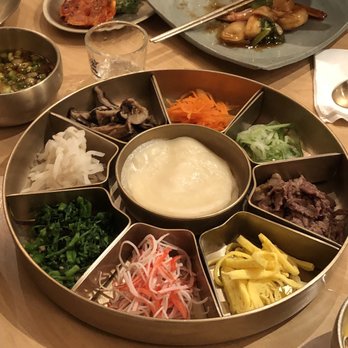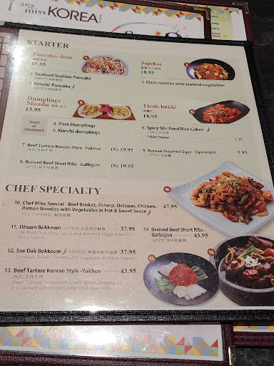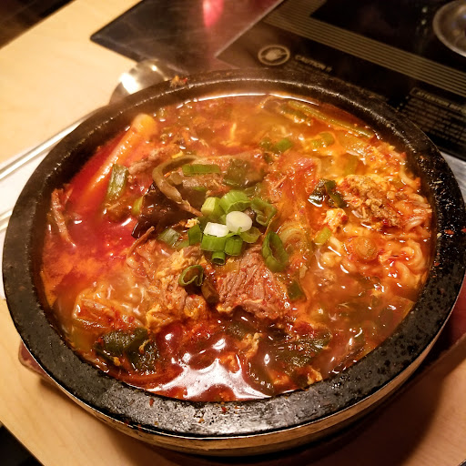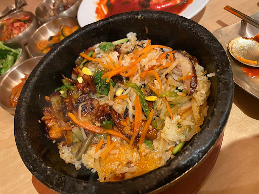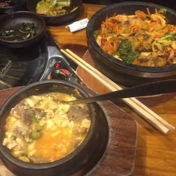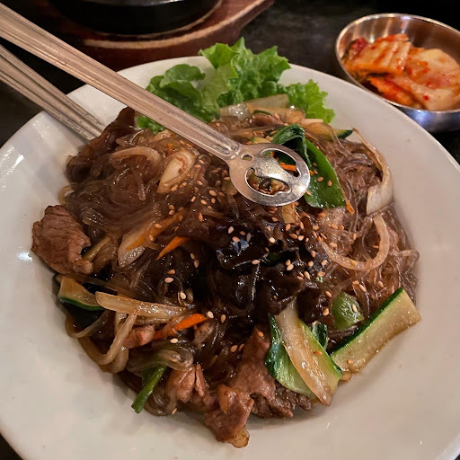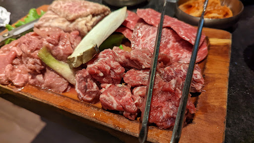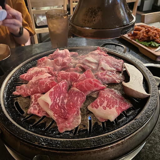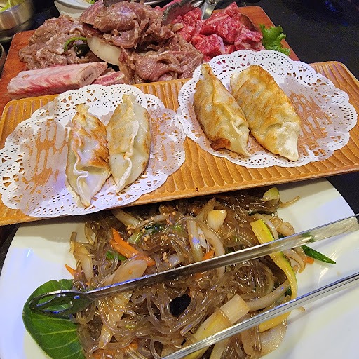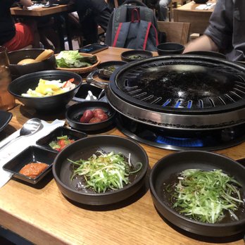 Im sure you can get a better bang for your buck in the area if you want Korean BBQ. However, my boyfriend and I were getting hangry and tired, and we just wanted to eat. So thats how we decided on Miss Korea BBQ. Just as an FYI, they lie about their wait times. We were told 5 minutes, and after a few minutes, they sent us to their upstairs seating next door and told us 5 minutes again. We proceeded to wait for 15 minutes. This isnt a long wait time but I would prefer not to be lied to, ya dig? Once we were seated, they came and took our orders pretty quickly. We went with the Love Set combo ($99.99), which had marinated short rib (both boneless and with bone), unmarinated boneless short rib, beef bulgogi, and your choice of a stew. Theyll throw it on the grill for you but sometimes they take too long to come back and tend to the grill, so wed take the meat for ourselves. Everything tasted really good but it was pretty expensive and the portions are small, so it wasnt really that worth it. We also ordered some japchae, and the beef tartare bibimbap (which was basically just bibimbap with a few strips of frozen beef and wasnt that good overall). I really liked the japchae. It was probably the best part of the entire meal so if I ever come back and I dont feel like spending all that money to not be full, I would probably order this.