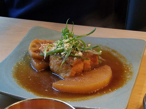 One of the fun things about having visitor is going to places you normally avoid like the mob at that tree at 49th St or the intersection of the world with bright neon light billboards and trying a new place from the usual. On a cold Dec night Korean BBQ seemed like a lovely idea. Nothing better than friends around a heated grill with meat cooking. The spacious interior is comfortable and wood bench seating with copper vent hoods. The service is very friendly on the night we went. Maybe it was later and mid-week so no line of crowds waiting. The host seated us even though waiting for several more people havent arrived. Our smiling, friendly waitress was patient as we organized ourselves with drinks. We decided to go with the two sets. The Love and Happiness with one spicy tofu and non-spicy jjigae. Even though it says for two we found it more than enough for 7 with the sides, seafood pancake, jjigae and japchae. I liked that the waitress served everything out with the shared dishes and even the meat first round. Gives the newbies to Korean BBQ how to eat it. Miss Korea BBQ impressed everyone with the meat quality. The service and friendly staff. There was no rushing but will have to see when I come back during more peak times how that really is. But for my first impression Miss Korea was had all the warm hospitality of the Korean culture I remember when I was in Seoul.
