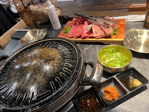 My family and I went there for them to try korean food for the first time. I as military service member who was stationed for a while in South Korea I was familiar with the food as far as what to order, how to cook etc.. not to mention it was one of my favorite food. The restaurant was ok. when it comes to cleanliness, a little cramped up but its NewYork so its understandable. The food is "average"korean BBQ. I was expecting better since its in NewYork but its really not that special and its expensive. The server we had was so rude. First I ask her if we could bbq are own food? she gave me a face like its a privileged to do that. Then while we eating she shows up and start schooling me on how to cook as she pulled out some rude comments and gestures. Finally when its time for me to pay the bills, she went to my face and said "do you know how to do math?" she (server) was trying to say I did not put enough tip because according to her its supposed to be 15 percent? I was totally shocked to the point that I almost lost my temper. In her luck I kept my calm and gave her $26 and something cents for tip and she even pulled out a calculator for me. I know what I did was stupid but it was a family vacation and I dont want to ruin it for my kids by putting a foot in here face and going to jail. So beware of that fat korean lady. Shes about 30 yrs of age 52 in height and speak fluent english unlike the rest of the servers (skinny) that I have seen there.
