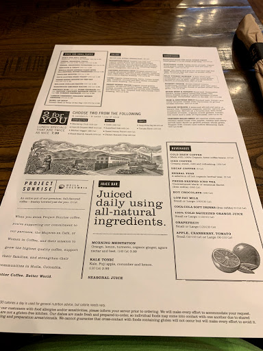 Great food, with a variety of healthy food. A lot of breakfast items, along with soups, salads, and brunch items. Great atmosphere, friendly service will be back for sure!