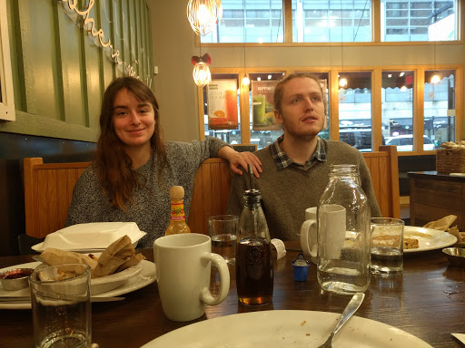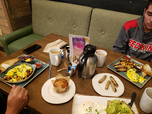 Tasty but on the expensive side for what you get. Only open through lunch and offers both breakfast and lunch type food on the menu. I was recently very disappointed with their menu update which saw the raisin bread go away in favor of everything using brioche. I used to have my french toast made with the raisin bread which was awesome. Banana crunch pancakes are still available though so Im still covered, dont think Ill order the french toast again with the change.