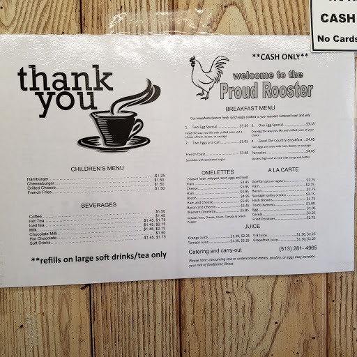 My boyfriend and I were regulars at proud rooster when we went to UC. The best breakfast place in Clifton! Food and service are always amazing. Our one waitress has been there the entire time weve been going and shes always so friendly. Meal for 2 usually costs us $16 total. Highly recommend