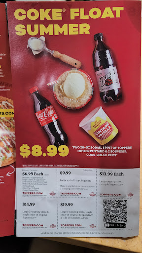 I visited toppers during my freshman year during a promotional period where the pizza was 1/2 off. They ran the promo again this year so I decided to try it again. Overall Im very satisfied with my order. + Fast, made it before my estimated time arrival which allowed myself to pick up and go. + Tastes very good, no issue with quality or taste. + Cashier was very nice, offered me plates and napkins as well as spices to add onto the pizza. - The pizza is pretty expensive without promo/coupon codes. Toppers fell off my radar after they stopped having good deals last year so Im not sure if that will be a repeat again this year. Its just not as competitive as the other pizza ships that will give you a full pizza with toppings for half the price. - The other reviews on here are slightly concerning regarding bad service. This seems to be most prevalent on phone call orders and delivery orders. I always do carry out so I personally havent experienced anything. I will update my review if I do.