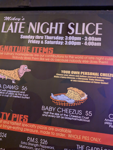 Great eclectic atmosphere, outdoor patio, and Mikes Late Night Slice Pizza on the patio, you cant go wrong.