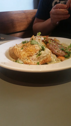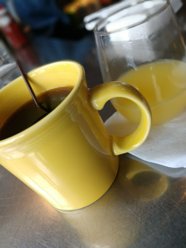 Great breakfast! Dropped in right at opening on a Sunday morning at 9am, greeted with a smile and grabbed a seat at the bar. Less than a minute later had a fresh cup of coffee and was looking thru the menu trying to decide. Chose the traditional, couple eggs, bacon, hash browns, and a couple pancakes, seemed like just a few minutes and there it was, coffee was being topped off and asked if there was anything else I needed. I pretty much devoured, ok inhaled it. When you have a piping hot breakfast presented in minutes of ordering what else is there to do?! Although I tend to stay close to traditional with breakfast I saw some interesting items that looked good too, the guy next to me was chowing down on some huevos rancheros smelled delicious! I could tell there were a large number of locals that made this a Sunday ritual and with good reason. Both the staff and the customers would call each other by their first names and chit chat about the weeks happenings. I really dug the style of the place, setup somewhat like 50s diner with a touch of today, its got that small hometown diner feel thats very welcoming, when you walk in you know youre going to enjoy what ever you decide to order. If I had been in town longer I would have been back to try the biscuits and redeye gravy as that looked as good as it smelled!