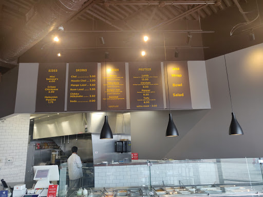 Chipotle/Piada/Bibibop style Indian food.to go or eat in - either is a win. Great ambiance - nice, modern decor, not kitschy. It looks like they havent been open long yet, as there was nothing on the shelves. If they keep it simple and modern, I think its going to be really nice. Food was fantastic. I had a chicken bowl with spicy rice, saag sauce, spicy cauliflower, and carrots. I think the chicken might have been a touch salty, but it was overall really delicious. It wasnt wimpy spicy, but it wasnt burning my mouth out either. My partner had a lamb wrap and he really loved it. Price point - just what you would expect, good portion for the price. We will definitely be back!