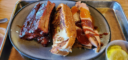 I stopped in for lunch one afternoon and found it to be a good overall restaurant. I gave it four stars instead of five because it was good, but the main attraction didnt blow me away. Being from Texas, I judge every barbecue restaurant by its brisket, and the brisket here was just OK. The brisket had a nice smoke ring on it and was tender, but mine was dry and overall lacked flavor. The flavor component was particularly curious because it had such a defined smoke ring I expected it to have more smoke flavor, and I really didnt get that. The sauces were very similar to a Kansas City style sauce. They were very thick and heavily molasses-based. I personally preferred there sweet sauce to the original. The complement of sides or more on the restaurant side than the barbecue joint side that Im used to. I got there at about 11:45 and there was no line but when I left at about 12:15, there was a line 15 people out the door. So, with that being said the locals must really love it. All in all, it was a fine restaurant that I would have no hesitation eating at again, but I expected more out of the actual barbecue.