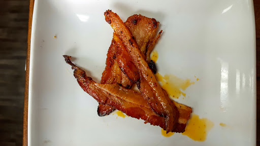 Late on a Saturday morning, the crowd was light but the kitchen was busy! We shared the Tiramisu Pancakes, Puddin French Toast and the Biscuits & Gravy. It might be noticeable from the photos....the sugar content across the board was very high for breakfast - we dont mind, we didnt go to be healthy! All three entrees were delicious, the portions were pretty big we took about half of each one home. The service was fantastic throughout, even as they became more crowded later in the meal. The atmosphere, while not ridiculously comfortable, very cute and they kept music on loud enough that you didnt feel uncomfortable having a conversation with those at your table, but you also werent screaming - perfect balance withe the hum of work being done in the kitchen.