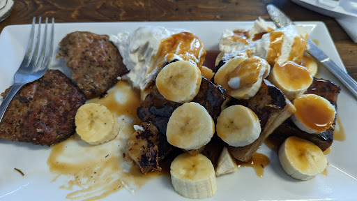 Great food. Small place though. Cute concept for building memories. Bread pudding French toast was heavy. If you are not looking for something dense I would recommend something else. I was looking forward to the blueberry sauce because boysenberry syrup is my favorite. Would be nice if they had pancakes with maple and blueberry sauce instead of the tiramisu pancakes they looked too much like a dessert to order. My husband said his omelet and toast was the best hes had. He had the Swiss ham and onion with a multigrain bread. The potatoes were fantastic. I would recommend the America breakfast or the omelet. And possibly share a strawberry shortcake waffle.