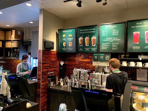 Great Starbucks location! I make it a point to stop here specifically every time Im up that way. The crew is the fastest ive ever seen, they whip up a green tea frap in less than 5 minutes. The last time I was in there I didnt even have time to read the info on the back of the coffee bags on the promo shelf before they were done, and so far I have never had to wait in line there. I mean, I love Starbucks, but this is the best one Ive visited so far.