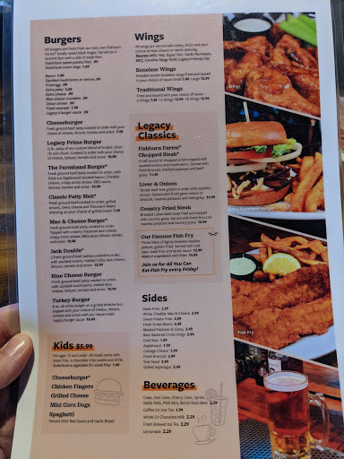 I love farmstead I live close they have a great fish fry the chicken Alfredo is great the veal parmesan is great there burgers are good they have a really good sweet tea liver and onions are also good they have steak and its all realitively cheap for the amount of food you get the restaurant is set up like a set dutchmans survis is also nice