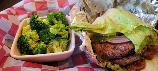 Food is really good. Burgers are huge and cookrd to you liking. Waitress was attentive and friendly. Place is pretty pricy for a run of the mill burger place.