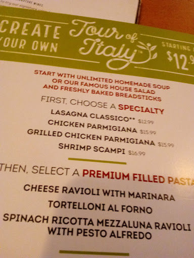 We went to Olive Garden the week after Easter 2016 at the insistence of our 10 year old daughter. My husband and I wanted to go to a local Italian restaurant instead but all of Olive Gardens commercials obviously worked on my daughter. We arrived and were seated with no wait, but that was just fooling us as we had a long wait for our waiter to come and take our drink order. He brought the drinks to us in a reasonable amount of time but then we had our second wait for the waiter to return and take our meal order. We ordered the "Pick 3" appetizer, I had a build-your-own pasta and the soup, our kids ordered off the childrens menu and my husband ordered the buy one-take one and opted to have the stuffed rigatoni in the restaurant and the waiter said hed take the order for the take-one towards the end of the meal. The appetizer came quickly and with it, the infamous breadsticks (I recall in the past having the breadsticks before the appetizers but my memory could be wrong), but not my soup. Then we waited for the food to arrive. It was a bit of a long wait, and it was later in the evening, 8:30pm on a Sunday at this point, but we were busy talking so the time passed by fast enough. The dinner arrived (with my soup). The food was so disappointing. My son ordered mac-and-cheese with fries, he only ate the fries. My daughter ordered pasta with meat sauce and she only ate about a third of it. My tri-penne with primavera sauce and chicken meatballs was terrible. The meatballs were very odd tasting and the penne?! COMPLETELY overcooked. No chewing needed, soft enough to swallow whole, I didnt eat it. Thankfully the soup was good, the Chicken Gnocchi, and since it was unlimited refills on the soup, I figured Id just eat that. My husbands stuffed rigatoni wasnt terrible, but it wasnt good either. I wish I could tell you the waiter arrived and we told him our concerns but he never showed back up. No refills on my soup, no take-one for my husband, no drink refills, nothing. At this point, it was only us and one other table of 4 people in that whole side of the restaurant. We utilized the pay at the table option (and really? I find that terribly tacky), did not leave a tip (only the second time in my 40 years that Ive done that) and left. No worries about leaving an entire meal behind, none of us wanted to eat that awful food the following day. My husband e-mailed Olive Garden corporate offices that evening and got no response. Terrible food, terrible service. The only good thing that that my daughter will never ask to go back there again!