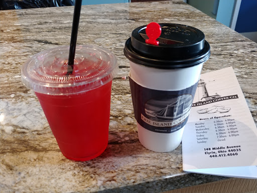 Cute coffee spot. Outside sign says amazing tasting coffee. Erie island coffee sign is on the side. They also have a drive thru.