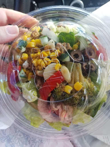 The salads were good but the pizza was over salted in the end of the cooking. The salads were served in plastic bowls that is absolutely horrible for landfills with no recycling bin in sight.Toppings were limited on the pizza