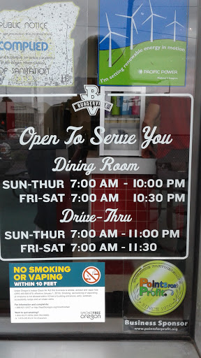 Food was good. As usual Burgerville is priced a little high. Though I appreciate their vegetarian burger, since most fast food burger places do not have this (Burger King being the exception). This is the Southern most Burgerville. As such, I would have thought that would be more seating inside. However, the available seating is rather small. Overall, it is a good location with very friendly and courteous staff.