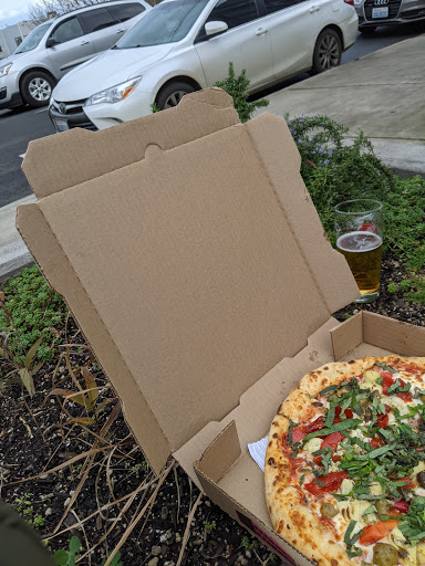 Its kind of an oddball building and setup. There are three distinct areas. A taproom for where you just want drinks, and then an upstairs and downstairs restaurants. Downstairs serves more typical pub faire, burgers, sausages etc. Upstairs has an oven that produces delicious, magical food. After taking in the sights from our huge family style bench seating on the east side of the huge open dining area. I picked a beer and immediately decided upon the pizza special. My girlfriend picked their clam chowder and Caesar salad. It goes without saying, the beer was wonderful. My girlfriend elated over her choices. We had the garlic bread show up first, which was light, flat, and full of wonderful garlic and mozzarella love. All complimented by a rich marinara that worked well either lightly dipped into by each stick, or slathered on each one. Then the pizza showed up. Glistening in grease of the pepperoni, sausage and bacon. Smelling akin to something that would come out of heaven, and tasted as youd hope. The whole time, we were supported by lovely staff that were all too willing to let us gorge ourselves on their food. We waddled out of there all too pleased with ourselves and I had lunch for the next day too.
