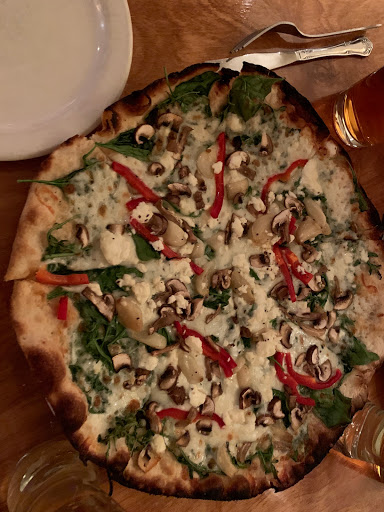 This is a very unique little place with a lot of character. It features a huge wood fire heated oven that must be about 12 tall. The inside is cozy and warm with a fireplace and tons of cool art on the walls. The service is friendly and relaxed, in fact the entire place is relaxing in sort of a Zen way. I was driving so we didnt sample the brews but the lemonade was hand made and very tasty. We had 3 pizzas and a salad, the pizzas had ample toppings and were tasty. Very unique twists not just the normal pizza varieties. They are all 12" pizzas. Im a bit picky on pizza as I do make my own from scratch at home and I hesitate to give 5 stars as I have my personal preferences. On that note, the cooking stone surface seems like it needed to hotter, but everyone has their own style. Also it would be more economical if larger pizzas were available for my family to share. The salad was very tasty and dressings were house made. Fireworks is not obviously fast food and relax as your order will take a bit to be prepared. We had first went into a strip mall pizza place and it was sparsely decorated, sterile and cold feeling, prices were similar and the menu very limited. We walked out and went to Fireworks, everyone agreed it was much better choice.