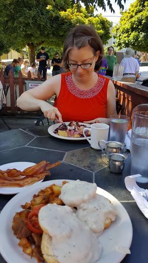 This is hands down the best breakfast place in Eugene. The owner and staff have always made myself and family feel welcome from the very first day we showed up in the middle of winter, straight off the plane from Australia. Weve been going back at least once a month ever since, and we always bring guests. The food is consistently delicious. They do great pancakes. They always bring a little plate of fruit out for my one year old. They do get very busy on the weekends, so come early or be prepared to wait a little. Its definitely worth it.