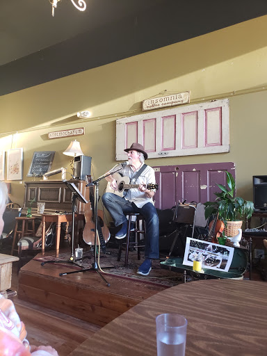 I meet here with friends to study and to hang out, and its extremely rewarding either way. I highly recommend the chai latte, aztec mocha, and jasmine oolong tea (with a splash of honey for me). A million times better than Starbucks! Even my Starbucks-loving dad enjoys Insomnia coffee, especially the cappuccinos. I havent really tried the food, but the couple of times I did it was pretty good. The service can be a little slow, but dont let that stop you. Theres also live music Friday nights and local art displayed on the walls. Great coffee, great people, great shop altogether.