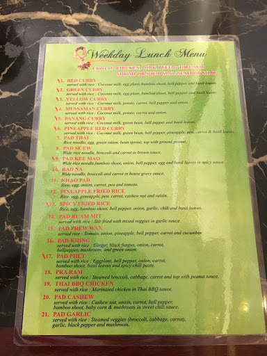 Excellent Thai food for such a small community. They seem to use authentic spices and ingredients that match or surpass the finest (more expensive) Thai establishments Ive eaten in around the country. Service is good, place is clean, food is excellent. Cant ask for more!